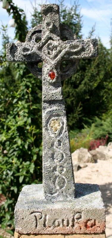 Suite à quelques travaux, je me retrouve avec des chutes de siporex. Rigolo ce truc; c'est léger, on dirait un peu de la pierre, et ca se travaille facilement. L'occase était trop belle, j'ai taillé une croix celte en lui donnant un style "granité mousseux".