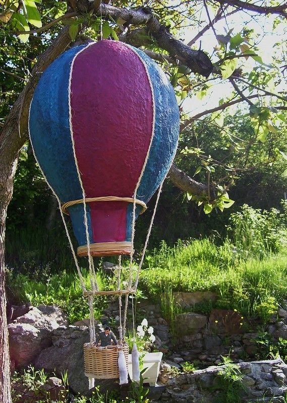 Après plusieurs essais infructueux, c'est sur suggestion d'une de mes nièces (merci Barbara) que j'arrive à créer une forme approchante, en collant de la pate à papier sur un ballon baudruche. Le reste n'est que pure invention et, surtout, ne pas servir de modèle sauf pour casse cou notoire !!!