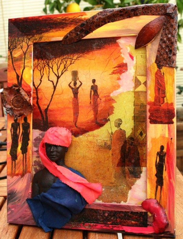 Pour clore cette période Africaine, voici deux variations sur cadre photo. J'ai utilisé un mélange des techniques habituelles;serviettage,peinture acrylique, powertex.