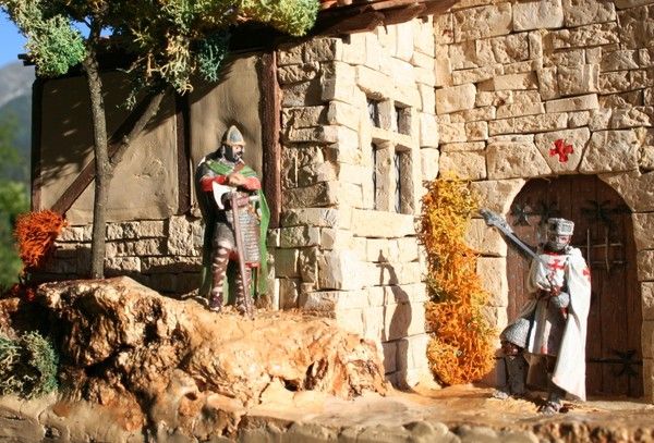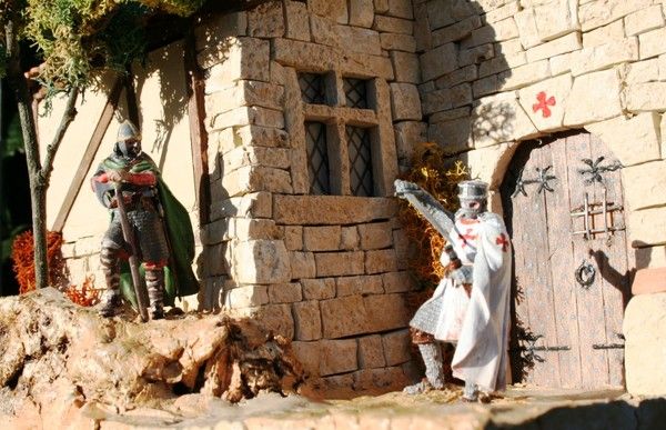 Il fallait bien que j'allie un jour deux de mes passions: le modelisme et l'architecture médiévale. J'ai donc réalisé cette vitrine miniature en reproduisant une Templerie du Languedoc. Une fois de plus, j'ai réalisé moi même mes "pierres" et "tuiles" en argile selon ma méthode décrite dans des réalisations précédentes. Sinon, balsa, mousse et brindilles pour la déco. l'armature globale est en carton mousse.